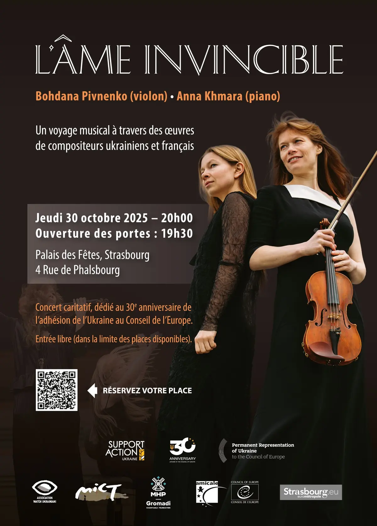Concert caritatif « L’Âme invincible », organisé à l’occasion du 30ᵉ anniversaire de l’adhésion de l’Ukraine au Conseil de l’Europe — une soirée qui célèbre le caractère indomptable de l’âme ukrainienne.